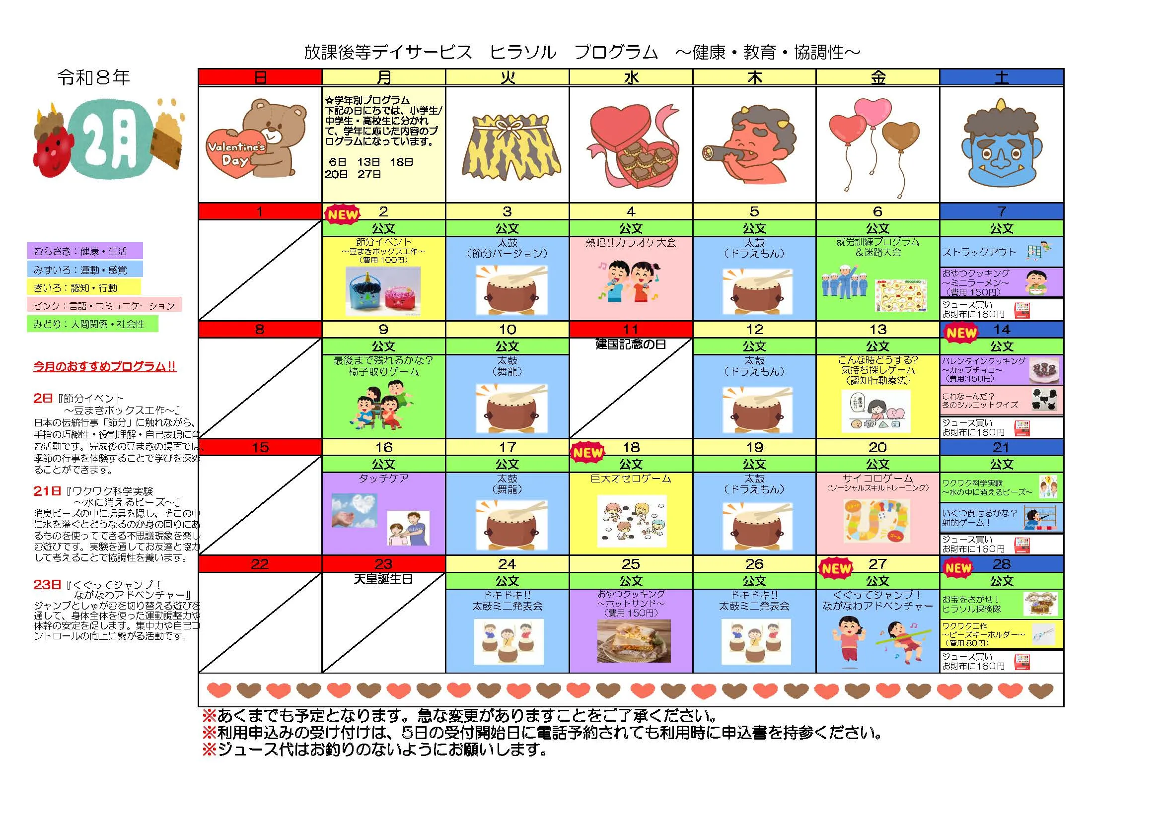 放課後等デイサービス ヒラソルでは、 2026年2月も子どもたちの健康・教育・協調性を育む多彩なプログラムをご用意しています 。 伝統行事や不思議な科学実験、体をダイナミックに動かす活動を通して、 「できた!」「すごい!」という成功体験を積み重ね、 子どもたち一人ひとりの成長と自信を全力でサポートしていきます。