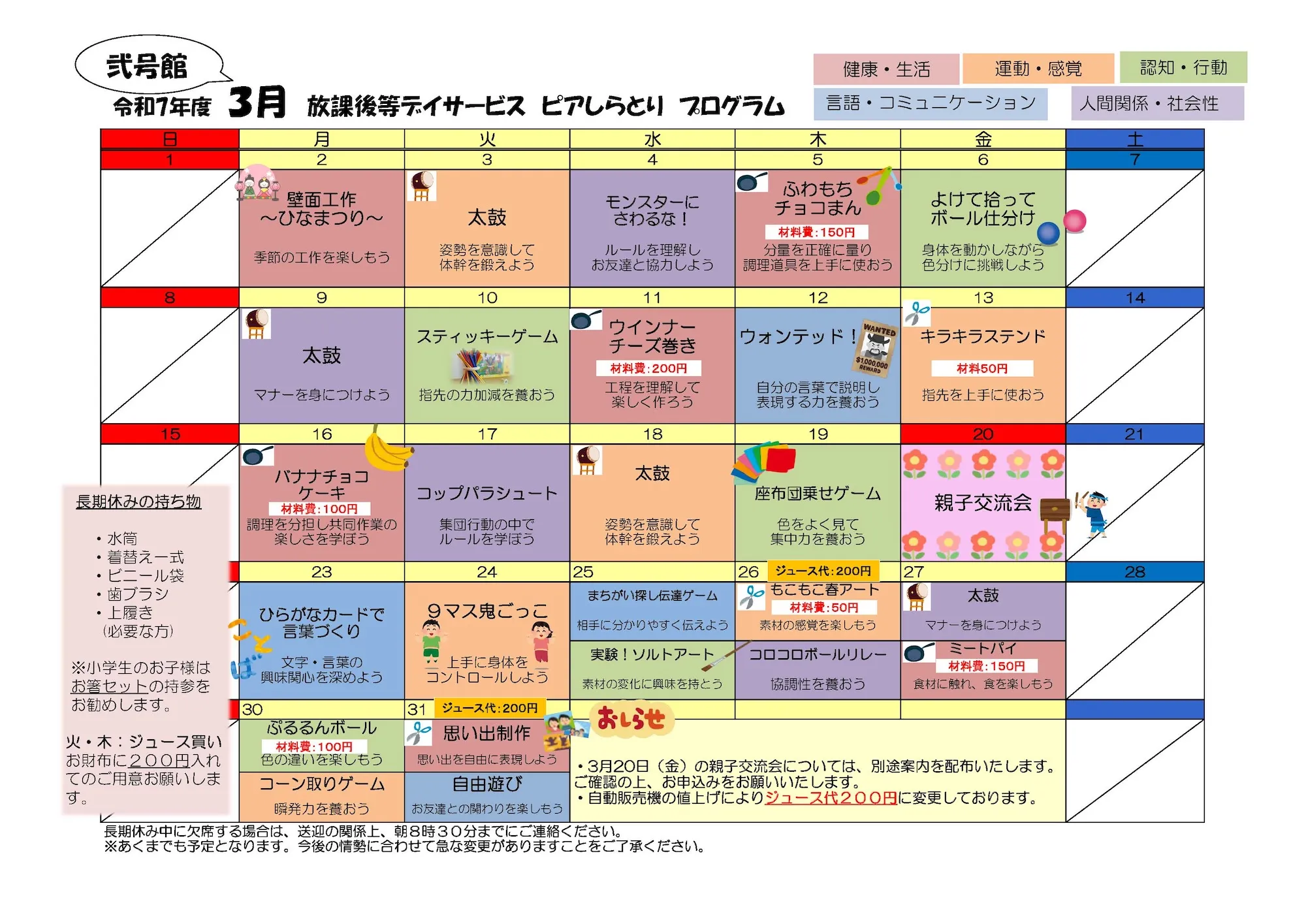 暖かな日差しに春の気配を感じる季節となりました。 ピアしらとり放課後等デイサービス弐号館では、3月も子どもたちの好奇心を刺激し、心身の成長を促すワクワクいっぱいのプログラムをご用意しています 。